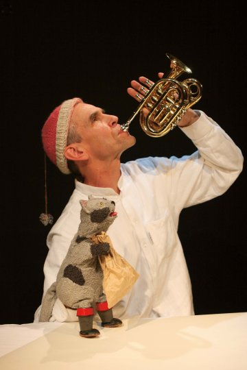 Michael Huber mit ‹Stivalino – der gestiefelte Kater›, Foto: Helmut Pogerth